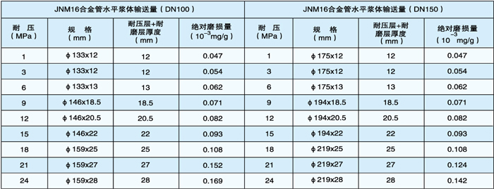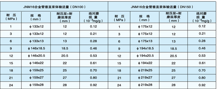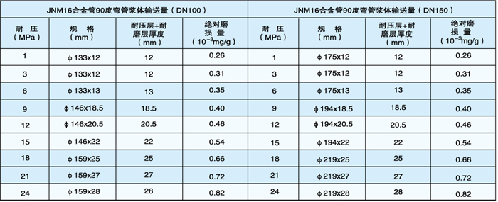 注:除表中所列規(guī)格尺寸外,高壓耐磨管件壁厚可根據(jù)磨損率和實際漿體輸送量增減。